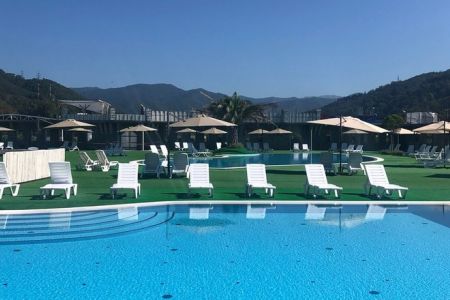 На самолете до аэропорта Адлер, далее на автобусе №105с до остановки «Вокзал Сочи», далее на электричке в направлении «Туапсе-Пасс» до станции «Головинка», затем пройти 660 м до отеля