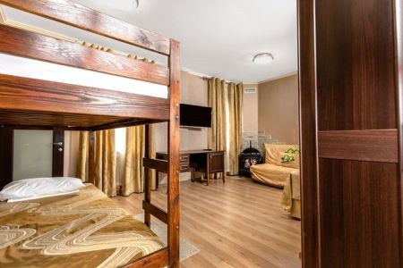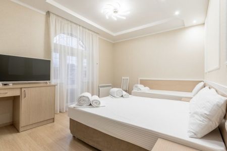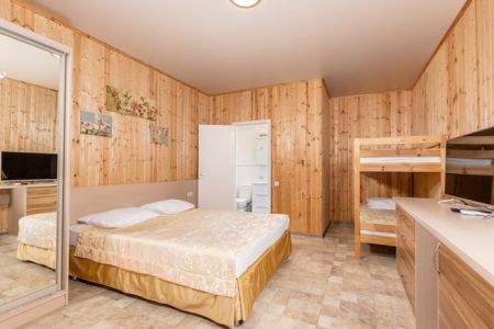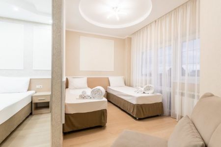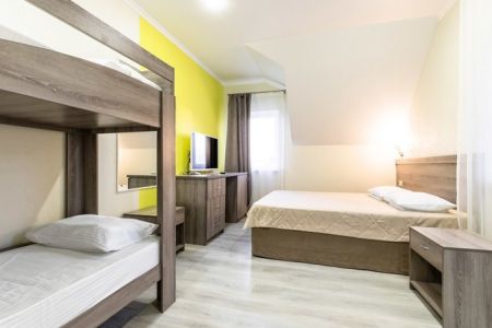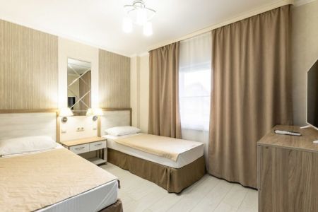 На поезде до ж/д вокзала Адлер, далее на электричке в направлении «Туапсе-Пасс.» до станции «Головинка», затем пройти 660 м до отеля